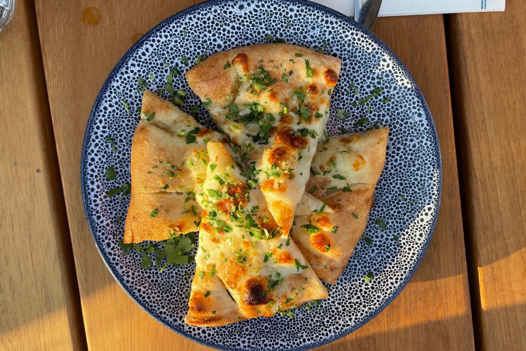 The cheesy garlic bread arrived within 10 minutes of ordering. It was perfect, with stringy cheese evoking pizza, and yet the bread had a crispy airiness to it. Extra salt and parsley on top added to the savoury note.